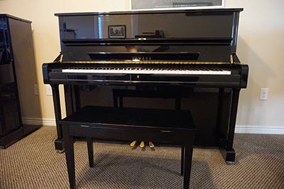 Black 2016 48″ Yamaha U1 and matching bench. Beautiful condition. Wonderful full sound and great touch. Practice pad to play quietly. Slow fall board over the keys.